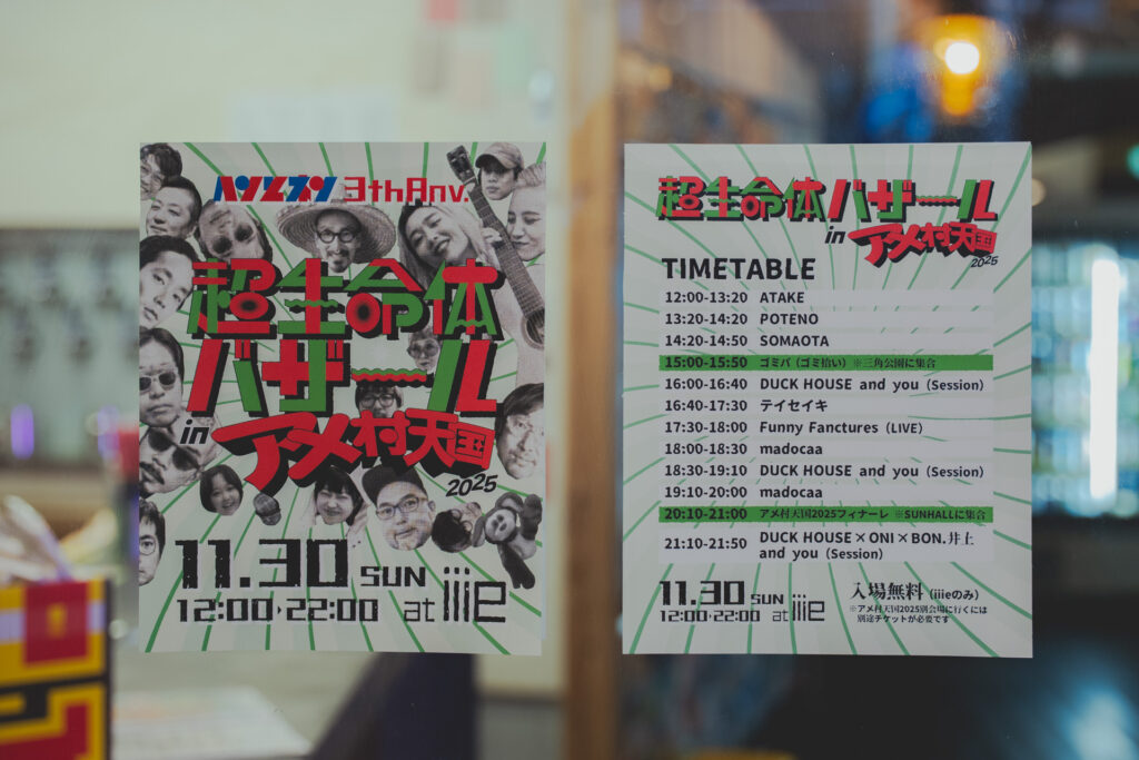 11月30日、愛はズボーン主催「アメ村天国2025」とのコラボで、ヘンとネン3周年記念をかねた「超生命体バザール」を開催しました。