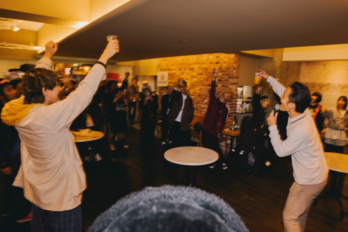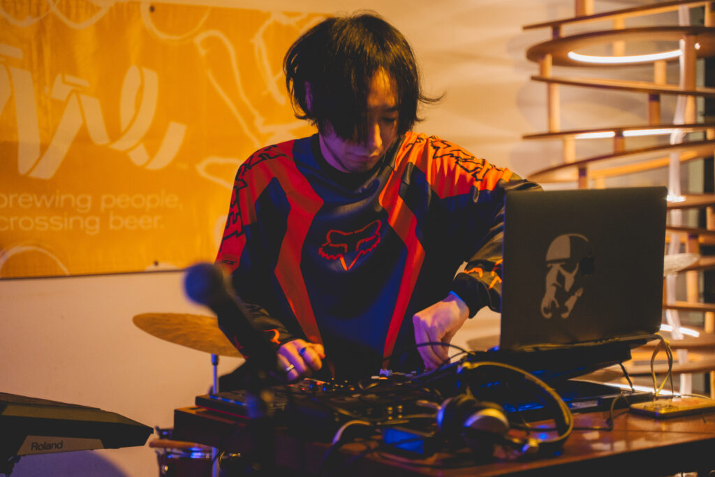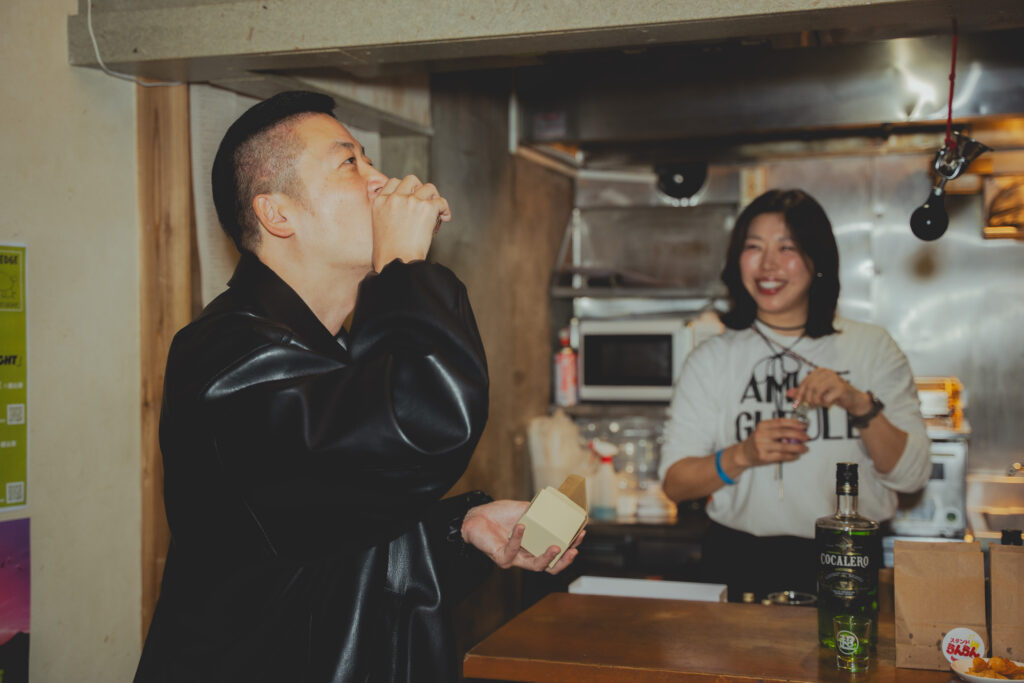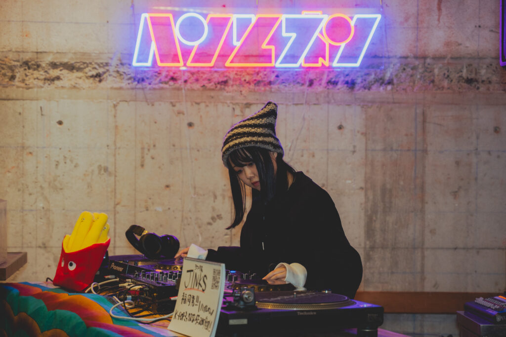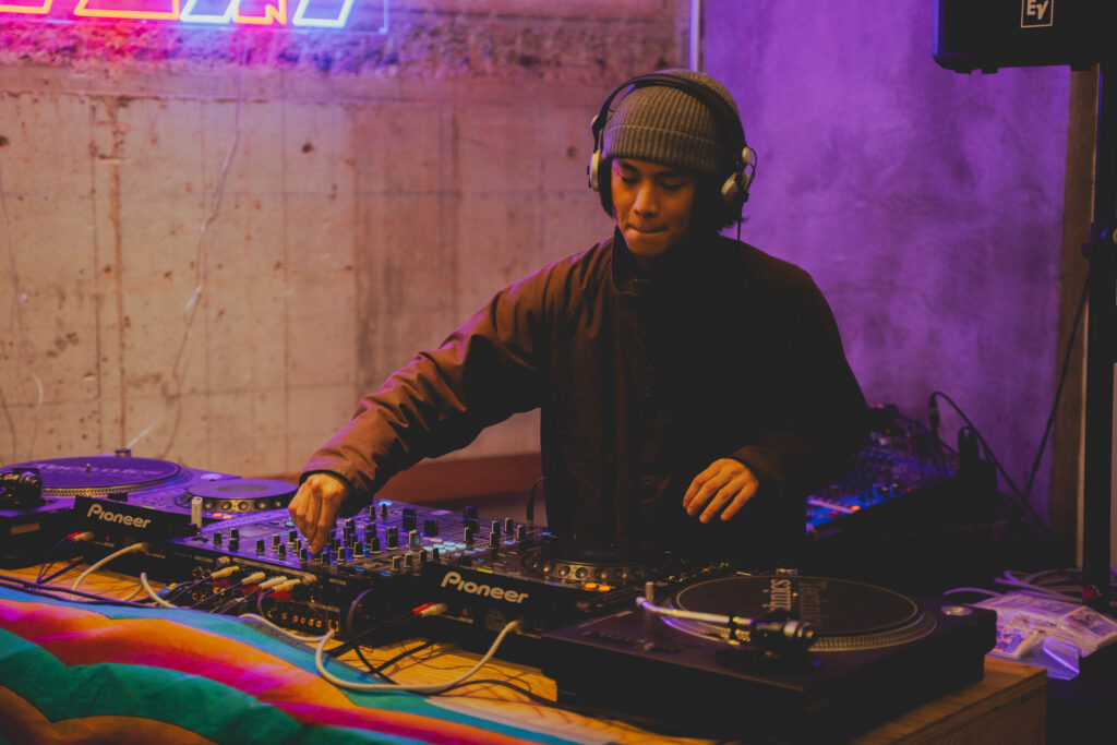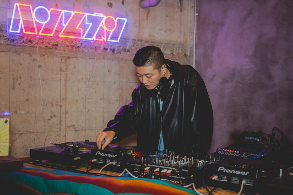 まだまだ音は鳴り止まない! 続いてのDJは、「宙泉郷」や「酒房絶景」など、大阪で4店舗の飲食店を経営するテイセイキさん。懐かしの平成ソングから最新ナンバーまで幅広くプレイ。