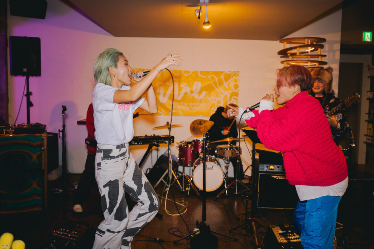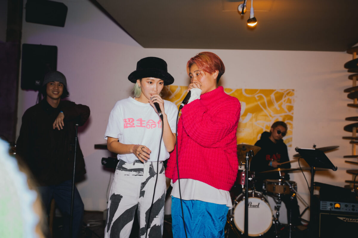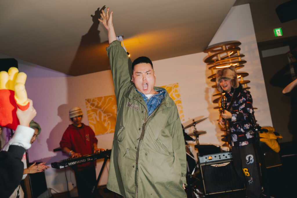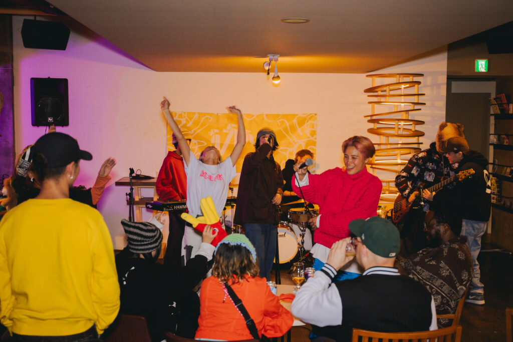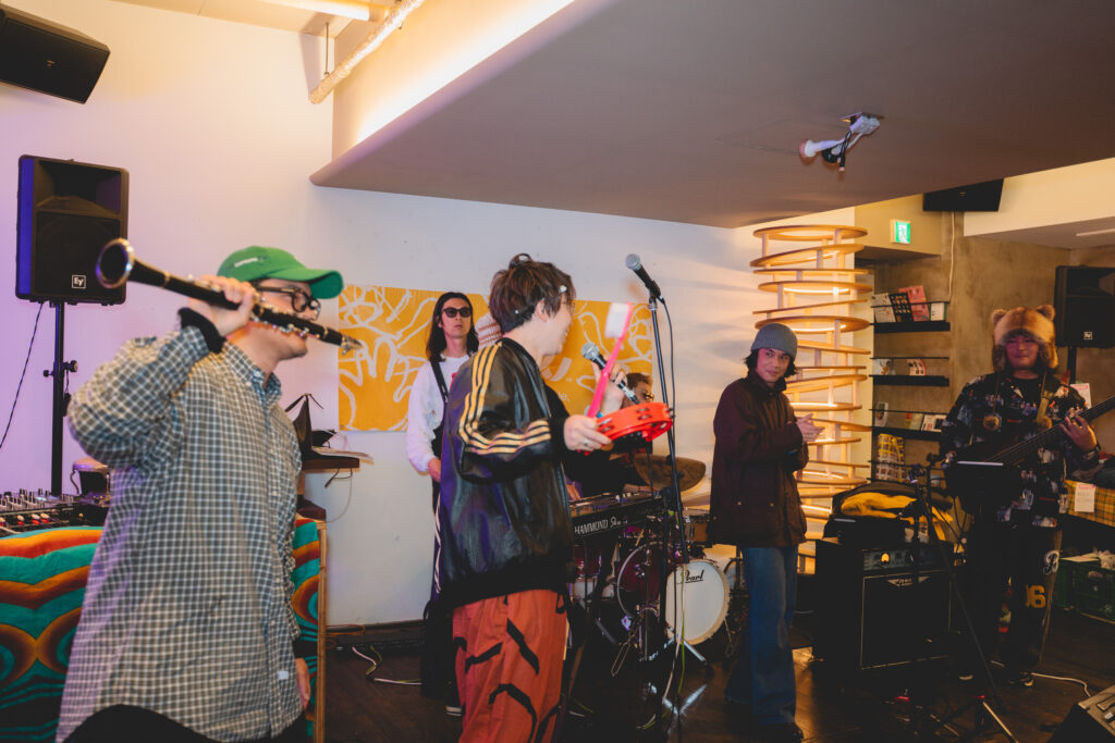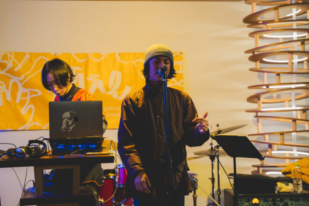 そしていよいよ、今回の超生命体バザールのメインテーマ、エクスペリメンタル・シェアハウスバンド「DUCK HOUSE」による第1回目のセッションタイムが開始!誰でも自由に飛び入り参加できるライブで、ラッパーやクラリネット奏者が即興で音を交わし、生きた音楽で会場を沸かせていきました。
