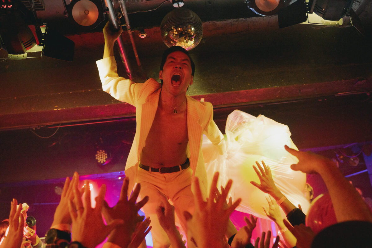 大盛り上がりのフロアに、儀間さんが勢いよくダイブ!