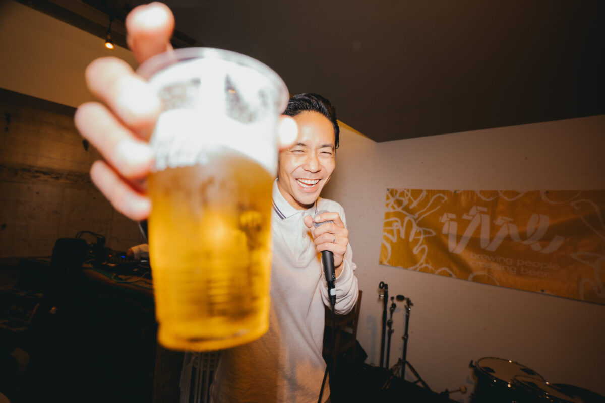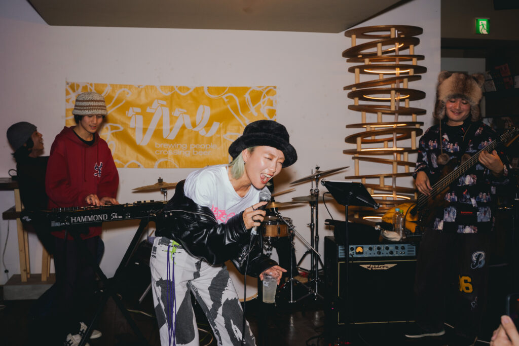 超生命体バザールの会場は、クラフトビールショップ&ギャラリー[iiie]。他の会場とは違い入場無料で、超生命体による出店の他、エクスペリメンタルシェアハウスバンド・DUCK HOUSEと超生命体のセッションを行いました。