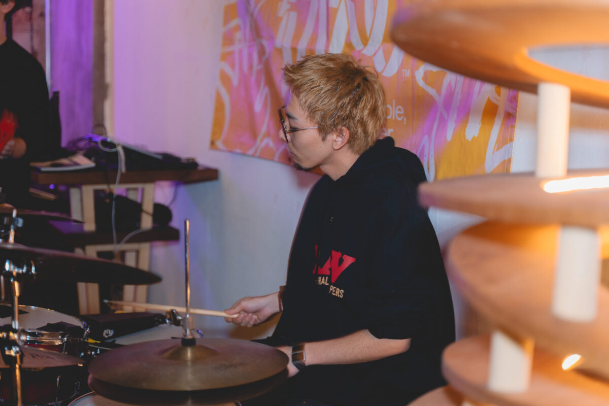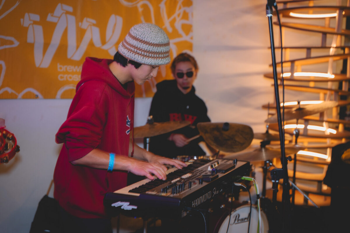 ドラマー・トラックメーカーであるKoji Shibanoさんによるエレクトロニックミュージックプロジェクトですが、SOMAOTAさんとの連携も絶妙で、会場がゆらめくように揺れていました。SOMAさん今日忙しすぎるやろ。