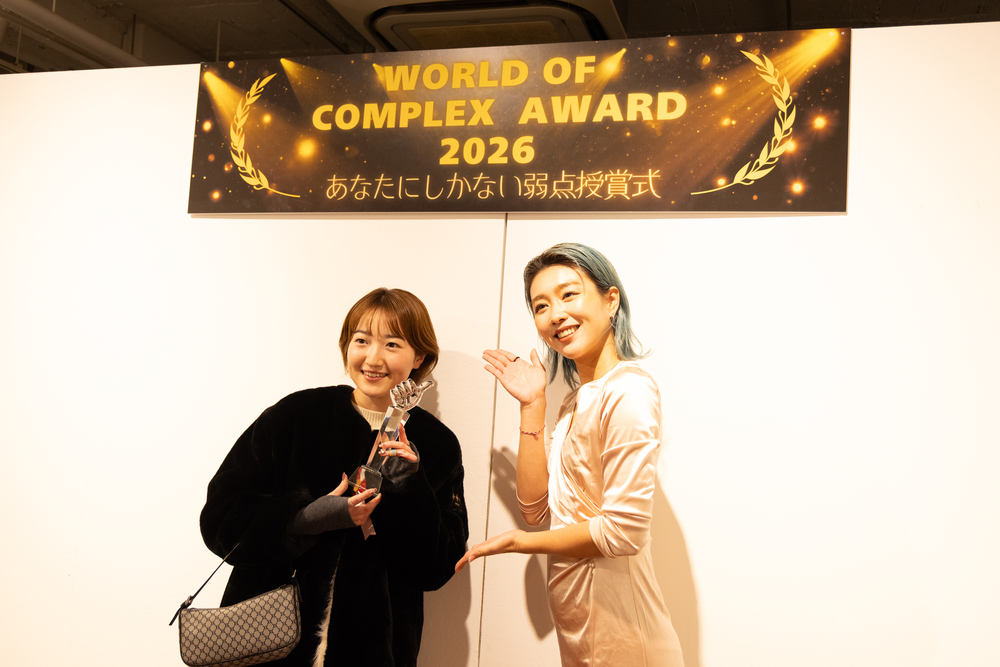 司会のBON.井上に導かれ、参加者は自身のコンプレックスについて語ります。心配性な人や足が臭い人、夕方になるとつけまつ毛が取れる人など、ネガティブに感じていたはずのコンプレックスが表彰されたことで、帰る頃にはポジティブに捉えられるように。