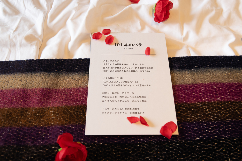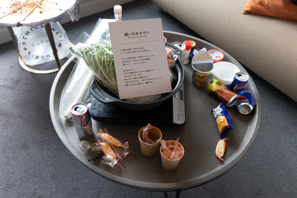 チェックイン時の会話を元にスタッフから客室のドアに届く手紙、客室で鍋パをしたかったお客さん、それに応えるべく卓上IHと鍋を用意したスタッフ、チェックインのときにはなかった薬指に指輪をはめてチェックアウトした人。