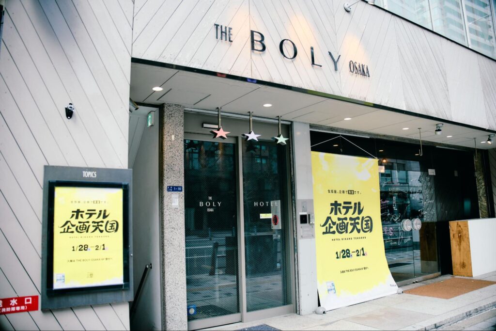 ホテル 企画天国の舞台は、ブティックホテル「THE BOLY OSAKA(ザ ボリー オオサカ)」。人間とも所縁ある同ホテルは、ビルの建て替えに伴い、2026年1月18日に閉館。2019年3月の開館以来7年に渡り、「大阪の人たちが自慢したくなるような、大阪らしいホテル」を目指して日本中、世界中から多くのゲストを迎えてきました。