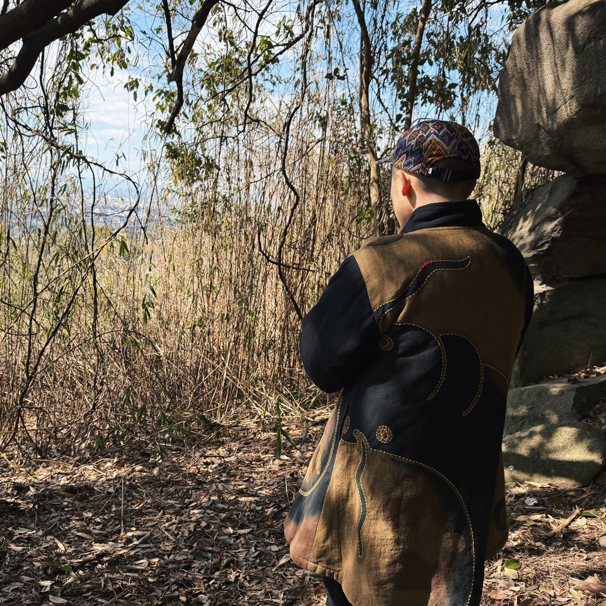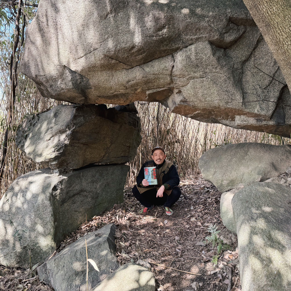 サルの生態を人間と照らし合わせた時に、人間のルーツや未来の可能性が見えてくる。こういう研究の本を読むのも、今日来ているこの「河内ドルメン」みたいな古代の遺跡に自ら足を運ぶのも、僕の中では同じ行為なんです。開運したいからパワースポットに行くわけじゃなくて、古代の人が祈りを捧げた空気感とか、彼らが見ていた世界観を感じた時、自分と共鳴してふつふつと湧いてくるものがある。それが、自分の中に「残響音」として残っていますね。