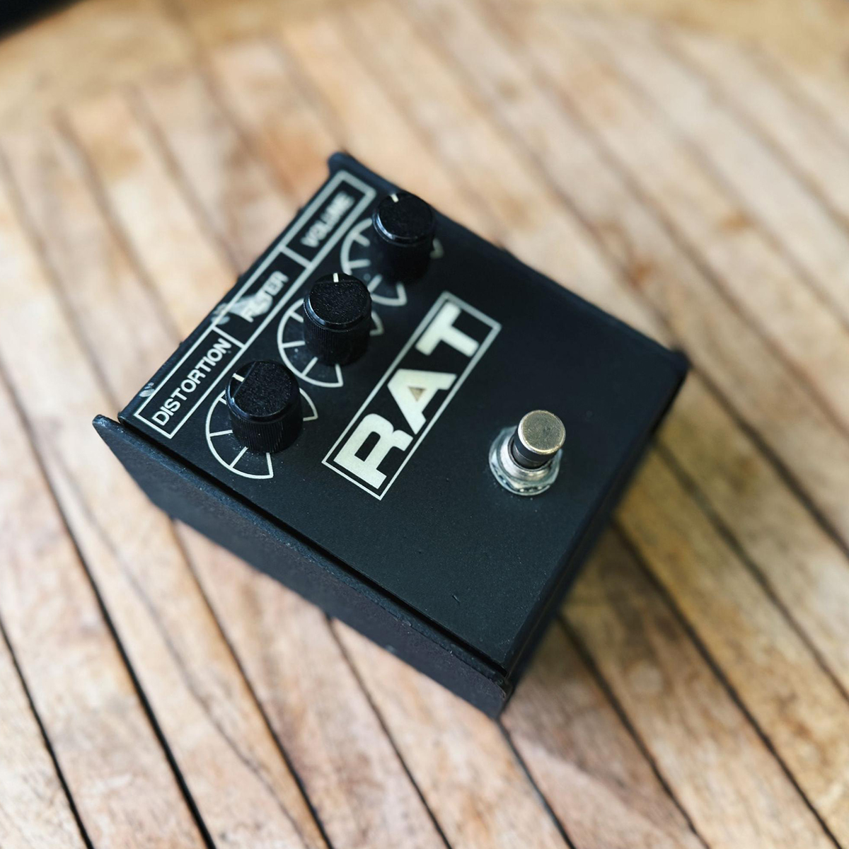 1978年の登場以来、ギタリストに愛され続けているディストーションエフェクター「RAT(ラット)」です。僕、エフェクターという存在そのものが好きなんですよ。音だけじゃなく、形とか、歴史も含めて。